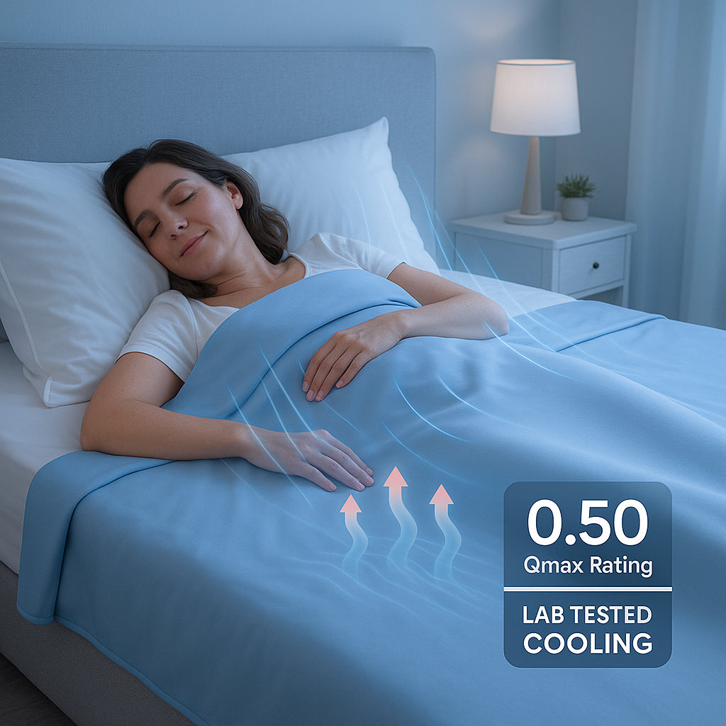 Feel cool instantly when you touch it with our lab-tested 0.50 Qmax rating, the highest possible for cooling blankets. Unlike cheap blankets that get hot in 10 minutes, ours pulls heat away 10x faster than cotton and stays cool for 8+ hours every night.